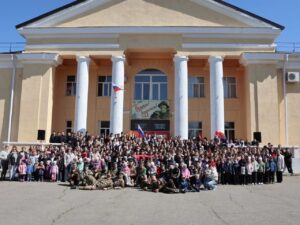 Главным событием мероприятия стало разворачивание копии Знамени Победы – символа Победы советского народа над фашисткой Германией.