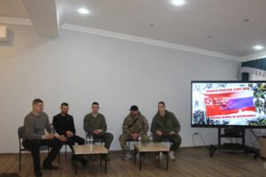 С юнармейцами села Александровского и курсантами ПВСК «Ратник» встретились представители «БОЕВОГО БРАТСТВА»: ветеран боевых действий в Афганистане, руководитель регионального отделения организации Николай Борисенко и ветеран боевых действий на Северном Кавказе, участник СВО, председатель координационного совета Ставропольской ассоциации ветеранов СВО Виталий Коновалов. Также с подрастающим поколением пообщались председатель районного Совета ветеранов Константин Негорожин, и.о. руководителя местного отделения Российского военно-исторического общества Чеченской республики, командир поискового отряда «Последний Рубеж» Сапуддин Гучигов, заместитель руководителя общественной организации «Наш дом город Грозный» Владимир Галичев, ветеран боевых действий на Северном Кавказе, участник СВО, награждённый медалью «За отвагу», участник губернаторской программы «Герои Старополья» Павел Лысенко и ветераны СВО.