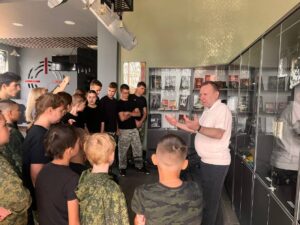 Для воспитанников «Ратника» была проведена познавательная экскурсия по музейной экспозиции, где они ознакомились с экспонатами, газетными вырезками, лозунгами и плакатами времен Великой Отечественной войны. Гостям рассказали об истории праздника, трудностях и особенностях службы в спецназе, боевых операциях. Курсанты также узнали о символическом значении крапового берета, являющегося высшим знаком отличия. Затем ребята приняли участие в соревновании по стрельбе из лазерных пистолетов в интерактивном комплексе, а также примерили на себя роли бойцов штурмовых групп и огневой поддержки в военно-тактической игре «лазертаг».