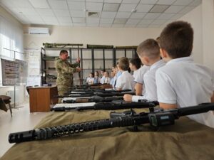 Затем гости познакомились с выставкой стрелкового оружия. Под руководством активиста «БОЕВОГО БРАТСТВА» Владимира Ковтуненко ребятам не только рассказали об истории отечественного оружейного дела, но и познакомили с различными образцами вооружения.