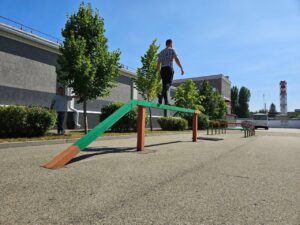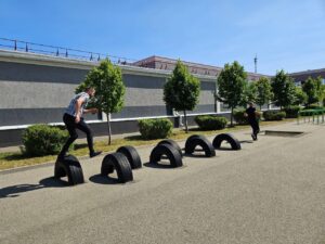 Полоса препятствий включает в себя: стену, брусья, лабиринт, ров, пеньки, завал, подземный переход и 100-метровую дорожку. Занятия проводятся в рамках модуля «Физическая подготовка», предусмотренного образовательными программами Центра.