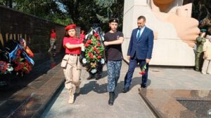 К участию в акции присоединились кадеты ВПК «Беркут» и руководитель клуба, активистка «БОЕВОГО БРАТСТВА» Мариетта Микитась. Ребята набрали воду из чаши в ладони и полили из рук цветы рядом с мемориальным комплексом «Журавли» в городе Кисловодске.
