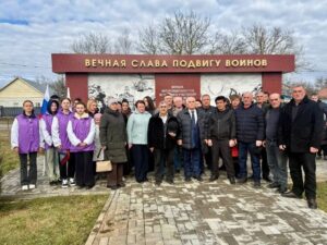 В память о тех, кто отдал жизни за Родину, прошла минута молчания, а также возложение цветов к мемориалу.