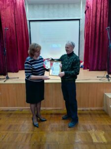 Ветеран боевых действий в Афганистане, волонтер, член «БОЕВОГО БРАТСТВА» Виталий Цымбал обратился к ребятам с речью, в которой подчеркнул важность борьбы с нацизмом в современном мире, а также выразил благодарность школе за участие в волонтерском проекте для жителей Новой Каховки. В ходе беседы гость подчеркнул, что каждый может совершить посильное дело для того, чтобы в мире стало больше добра.