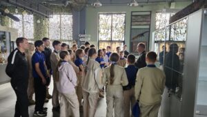 Ребята ознакомились с выставочной экспозицией Центра, посвящённой Великой Отечественной войне и специальной военной операции. Им рассказали о некоторых вехах в военной истории нашей Родины.