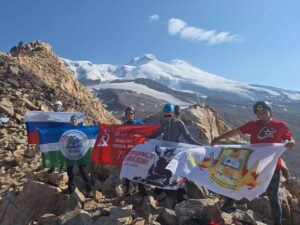 Ребята взобрались на перевал Хатю-Тау, западное плечо Эльбруса, и установили там мемориальную табличку.
