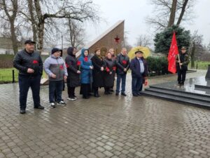 Ветераны совместно с сотрудниками Мирненской библиотеки приняли участие в возложении цветов к мемориалу, посвященному памяти павших героев.