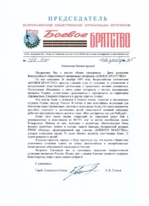 26 декабря Председатель Всероссийской общественной организации ветеранов «БОЕВОЕ БРАТСТВО» поздравил боевых друзей.